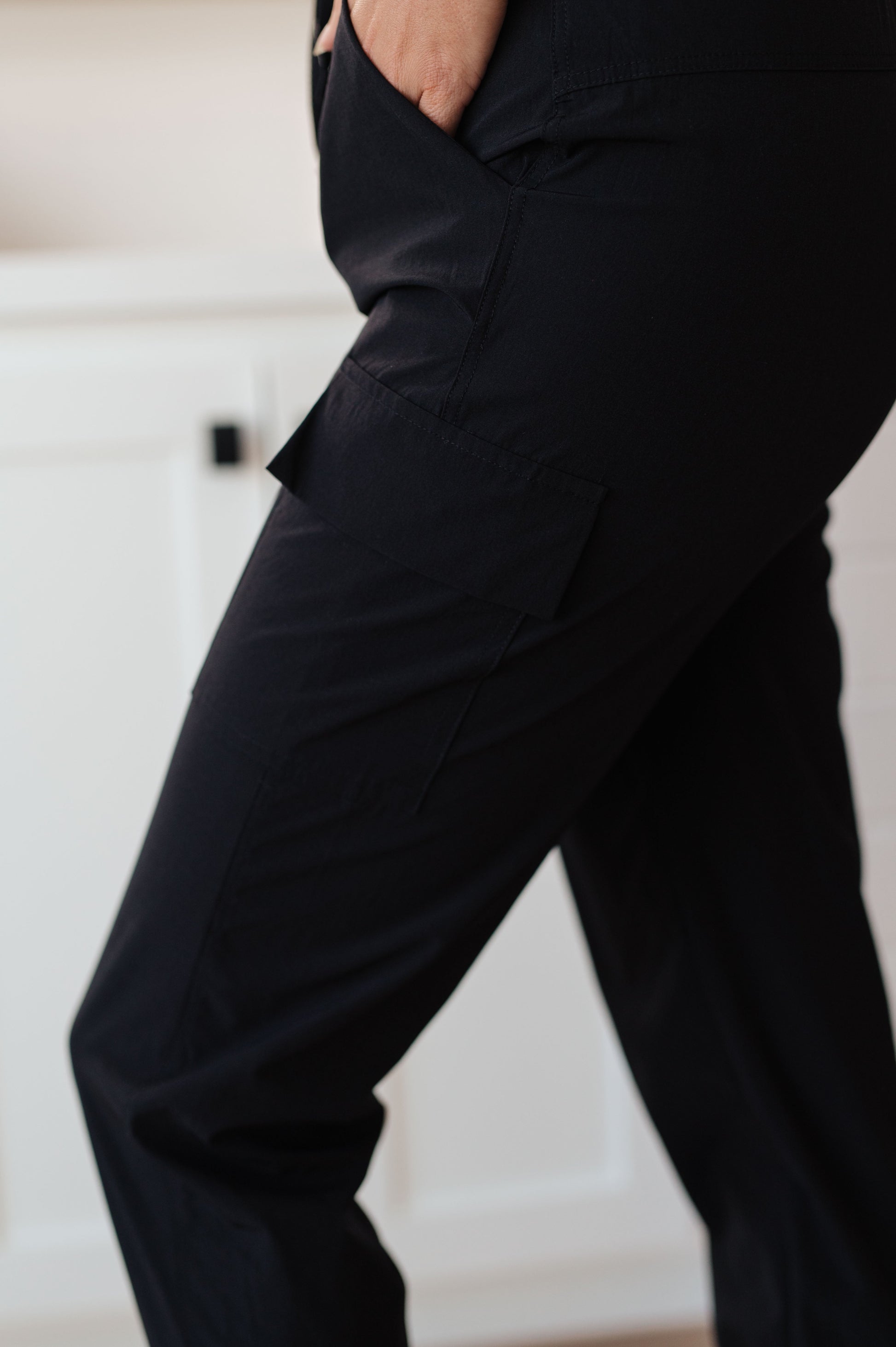 Our Dedicated To The Task Joggers will keep you going all day with a ribbed knit waistband, zipper pocket in back, and cargo pockets. Made with lightweight nylon fabric, you will stay comfortable and stylish in this jogger silhouette.